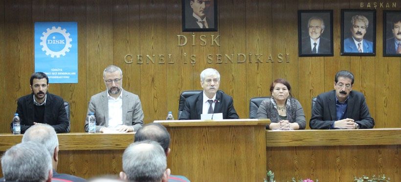 KESK Eş Genel Başkanları Şaziye Köse ve Lami Özgen, TMMOB Genel Sekreteri Dersim Gül, TTB Genel Sekreteri Hüseyin Özden Şener‘in katıldığı toplantıda ortak basın açıklamasını DİSK Genel Başkanı Kani Beko okudu.