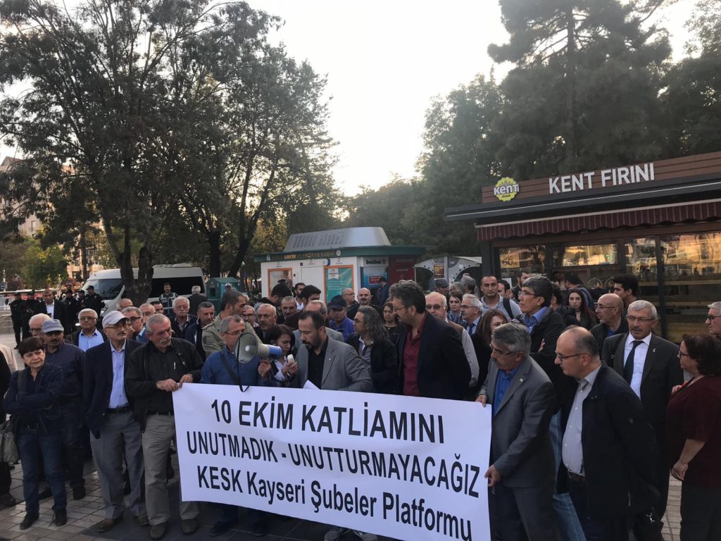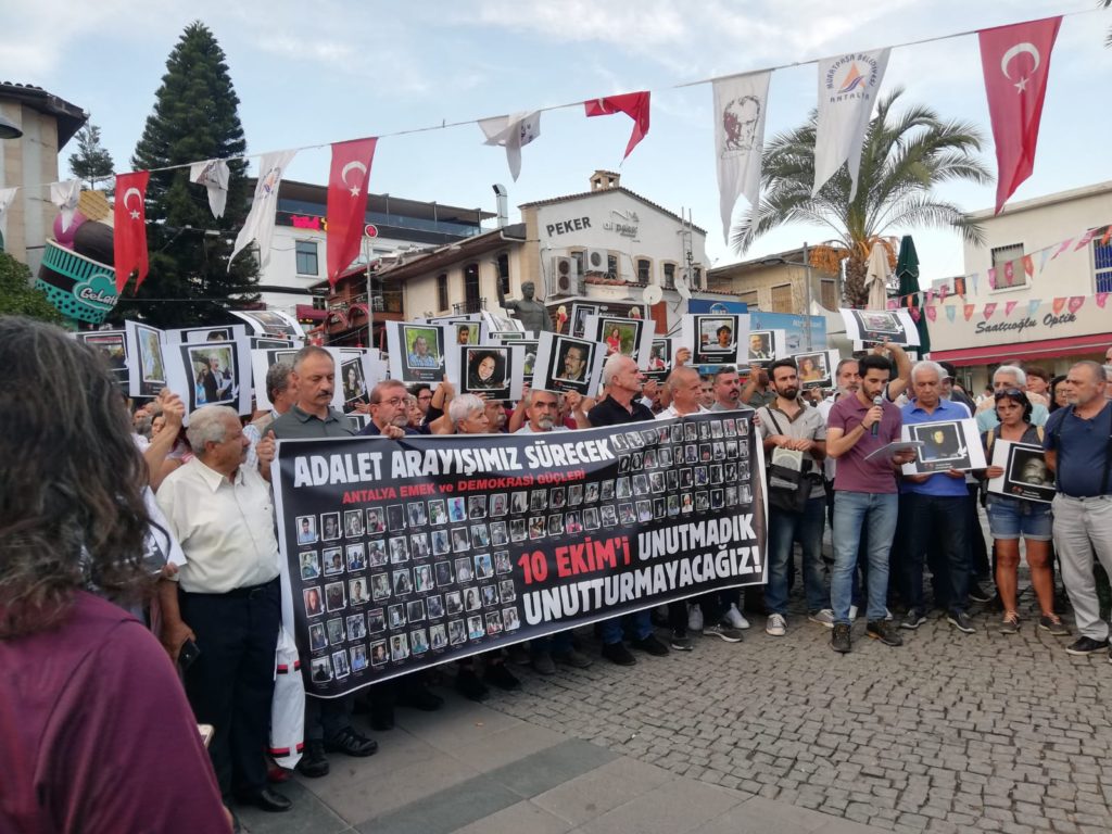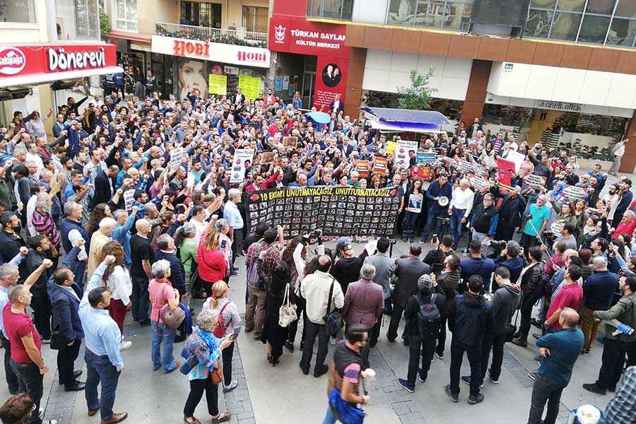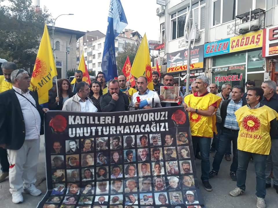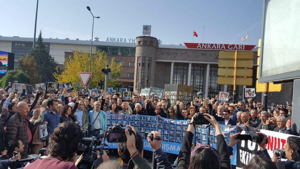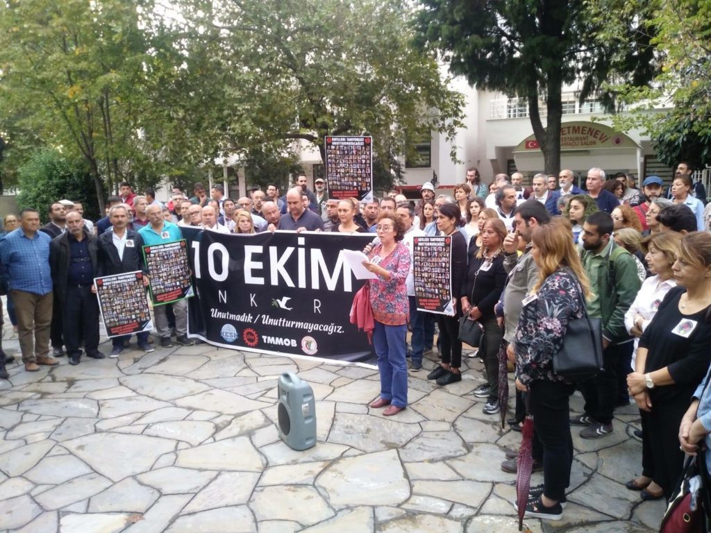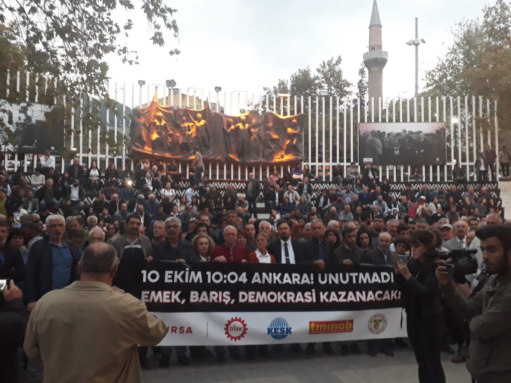 Ülke tarihinin en kanlı katliamı olarak tarihe geçen 10 Ekim Ankara katliamında 103 yurttaşımız hayatını kaybetmiş, emek, demokrasi ve barış talebi ile Ankara’ya gelen on binlerin sesi yaşanan katliamla kısılmak istenmişti.