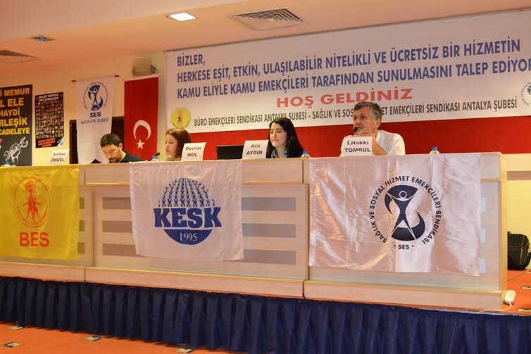 Mustafa KILINÇ “AKP’nin 2003 yılında açıkladığı acil eylem planının içinde olan ve bugünlerde gündemine aldığı “Kamu Personeli Rejimi Yasası”na karşı direnç geliştirirken,mücadeleyi yükseltirken, 657 sayılı DMY’yi savunma durumuna düşmeden net bir şekilde herkese etkin, ulaşılabilir, nitelikli eşit, ücretsiz kamusal bir hizmetin kamu eliyle kamu emekçileri tarafından sunulmasını “güvenceli iş, güvenceli gelecek” içerikli bir çalışma düzenini hep birlikte talep etmeliyiz.
