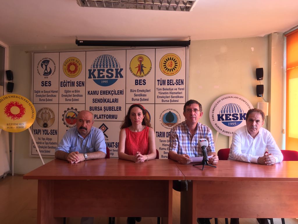 Büro Emekçileri Sendikası Bursa Şube, şube binalarında düzenledikleri basın toplantısında yargı yılı açılışı haftası dolayısı ile yargı sisteminin ve yargı emekçilerinin sorun ve taleplerini kamuoyu ile paylaştı. Şube Başkanı Ahmet Aydın yaptığı açıklamada yargı bağımsızlığına ve toplumda her geçen gün dahada yakıcı hale gelen adalet talebini ortaya koyduktan sonra yargı emekçilerinin çalışma koşulları ve taleplerini ifade ederek sendikalarının yaklaşımlarını ifade etti. Aydın, 60 bin yargı emekçisinin kölece çalışma koşullarında yargı hizmeti üretmeye çalıştığını, adalet saraylarında yargı emekçilerine yönelik mobbinğ uygulamalarının yaygın olduğunu, görevde yükselme sınavlarında mülakat uygulamasının yarattığı haksızlıkların iş barışını bozduğunu ifade ettikten sonra Adalet Bakanlığı’nın yargı emekçilerinin sorunlarını bütünlüklü olarak ele alması gerektiğini söyledi. Aydın; taleplerimiz nettir başlığı altında yargı emekçilerinin taleplerini ifade ettikten sonra sendika olarak mücadele kararlılığı içinde olacaklarını söyledi.