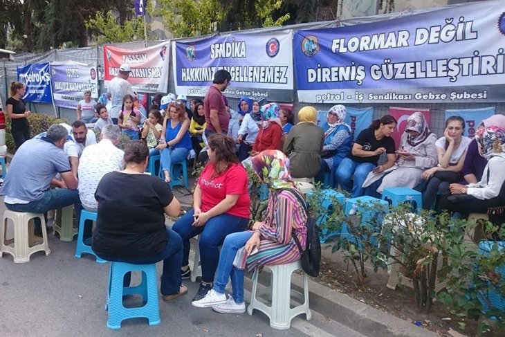 Gebze Organize Sanayi Bölgesi’nde (GOSB) yer alan Flormar kozmetik fabrikasında Petrol-İş’te sendikalaştıkları gerekçesiyle işten çıkarılan çoğu kadın 132 işçinin 15 Mayıs’tan bu yana fabrika önünde sürdürdükleri eylem 76. gününde.