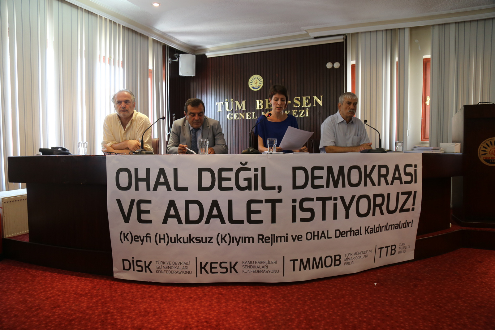 Alevi Bektaşi Federasyonu (ABF), Birleşik HAZİRAN Hareketi, Demokrasi İçin Birlik, Demokratik Alevi Dernekleri (DAD), Devrimci İşçi Sendikaları Konfederasyonu (DİSK), Hacı Bektaş Veli Anadolu Kültür Vakfı, Halkların Demokratik Partisi (HDP), İnsan Hakları Derneği (İHD), Kamu Emekçileri Sendikaları Konfederasyonu (KESK), Pir Sultan Abdal Kültür Dernekleri (PSAKD), Türk Mühendis ve Mimar Odaları Birliği (TMMOB), Türk Tabipleri Birliği (TTB) ve Türkiye İnsan Hakları Vakfı (TİHV), 15 Temmuz darbe girişimi sonrasında başlayan olağanüstü hal(OHAL) dönemlerine ve OHAL kapsamında çıkarılan kanun hükmünde kararnamelere (KHK) karşı ortak bir basın açıklaması yaptı.