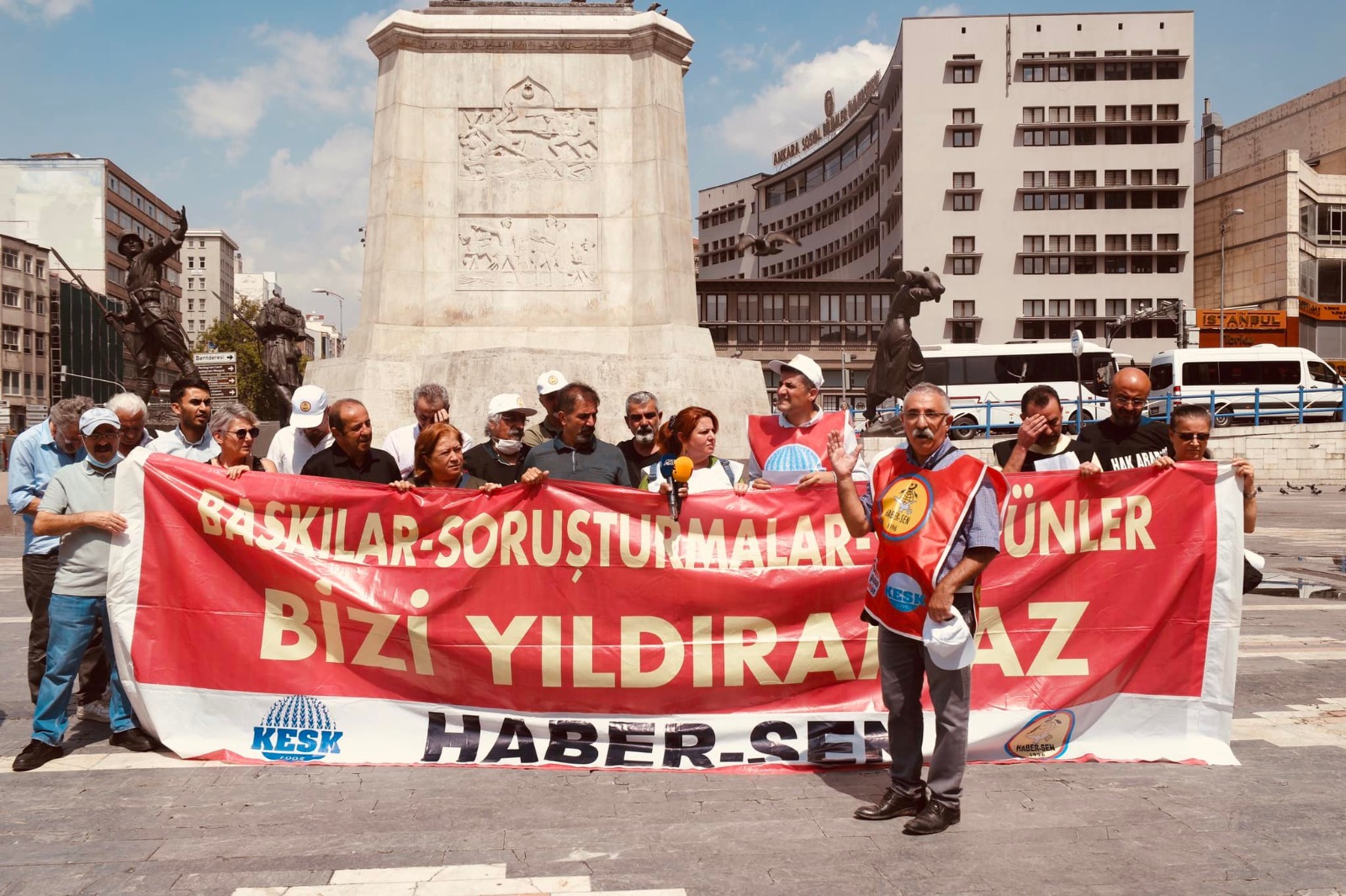 HABER-SEN Genel Baskanı Mesut Balcan tarafından Ulus Meydanı’nda okunan açıklama şu ifadelere yer verildi;