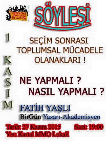 DSD KARTAL MECLİSİNİN BirGün Gazetesi yazarı ve akademisyen Fatih Yaşlı’nın katılımıyla yaptığı “Seçim Sonrası Türkiye- Ne Yapmalı, Nasıl Yapmalı” söyleşisi yoğun bir katılım ve canlı tartışmalarla son buldu.