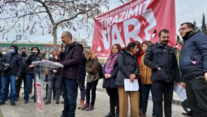 Bizler, tüm bu yaşananlara karşı insanca yaşam talebimizi dile getirdiğimizde ise aynı hükümet sesimizi engellemek için elinden geleni yapıyor. Zam istediğimizde bizi kapı önüne koyan patronlara ses etmeyen hükümet, işimizi, ekmeğimizi istediğimiz için bizi terörist ilan edebiliyor. Faturalara itiraz ettiğimizde bizi gözaltıyla korkutmaya çalışıyor. Yüksek faturalara isyan eden esnafı tehdit ediyor. Yani kısacası hükümet zamları engellemek yerine zamlara hayır demeyi engellemeye çalışıyor. Türkiye’nin dört bir yanında zamlara ve yoksulluğa karşı sokaklara çıkan halka polis saldırıyor. Fabrikalarda, işyerlerinde ek ücret ve maaş artışı için eylem yapan çalışanlar polis tarafından gözaltına alınıyorlar. Türkiye’de artık resmen insanca yaşam istiyoruz demek yasaklanmaya çalışılıyor. Bu durum bir emek kenti olan Kocaeli’de çok daha ironik örneklerle karşımıza çıkıyor: Örneğin Kocaeli Valisi, bir gece yarısı “bu saatte işimizin başındayız” tweetleri atıyor. Peki nedir o saatte Kocaeli Vali’sinin işi? Anayasal sendikal hakları için eylem yapan Farplas işçilerine darp ederek gözaltına aldırmak ve kendilerini çatıya kilitleyen işçileri fabrika çatısından aşağıya atmak için yere itfaiye brandası çektirmek. Örneğin İzmit Kaymakamı, bugün düzenlemeyi planladığımız İtirazımız Var mitingimizi, hiçbir somut gerekçe sunmadan keyfi olarak yasaklıyor! Nedir bu yasaklamanın gerekçesi diye sorduğumuzda cevap yok! Oysa biz biliyoruz: Söylenemeyen gerekçe, işsizlik, yoksulluk kıskacındaki halkımızın tepkisinin birleşmesinden korkmalarıdır!
