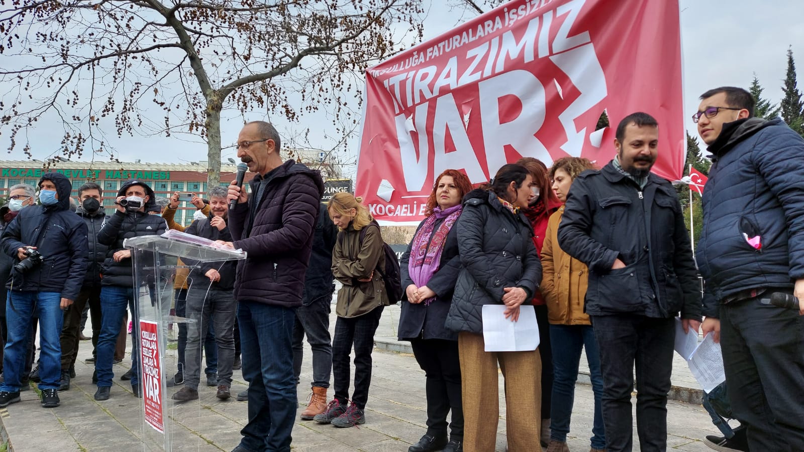 İki hafta önce ‘Zamlara, Yoksulluğa, İşsizliğe, İtirazımız Var’ sloganıyla miting çalışmasına başlayan Kocaeli Emek ve Demokrasi güçleri, Kaymakamlık tarafından mitingin yasaklandığı belirterek “İtirazımız yasaklamalarla engellenemez” dedi. Halay ve Horonla başlayan mitingi düzenleyen Kocaeli Emek ve Demokrasi Güçleri’nin içinde KESK Kocaeli Şubeler Platformu, (BES, Eğitim Sen, Haber Sen, SES, Tüm Bel Sen, Yapı Yol Sen) TMMOB Kocaeli İKK,(Elektrik Mühendisleri Odası, Makine Mühendisleri Odası), Kocaeli Tabip Odası, Emek Partisi, Halkevleri, Halkların Demokratik Partisi, Kaldıraç Hareketi, Sol Parti, Sosyalist Yeniden Kuruluş Partisi ve Türkiye İşçi Partisi bulunuyor. Mitinge ayrıca CHP il ve ilçe teşkilatı, Kocaeli Dersimliler Derneği, Kocaeli Alevi Derneği, İnsan Hakları Derneği Kocaeli Şubesi, KESK Eş Başkanı Şükran Kaplan Yeşil ve birçok Kocaeli halkı katılırken ‘Birleşe Birleşe Kazanacağız’, ‘Savaşa değil, emekçiye bütçe’, ‘AKP’den hesabı emekçiler soracak’ sloganları atıldı.