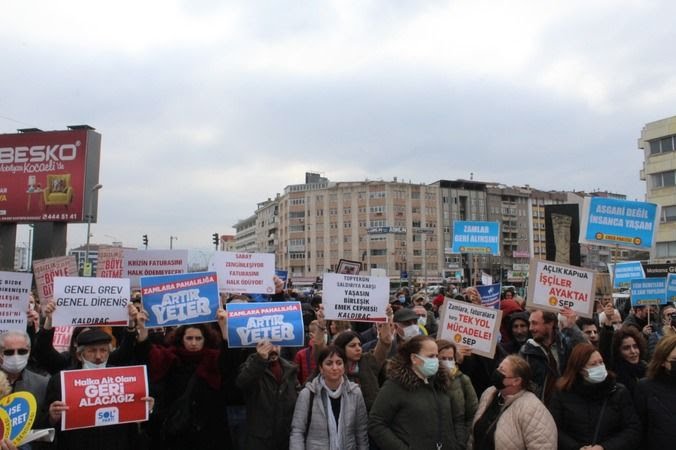 Yıldırım açıklamanın devamında “Bugün her türlü engellemeye rağmen artık yeter demek için buradayız! Gerekçesiz keyfi yasaklama kararına karşı İtirazımız Var demek için buradayız! 2021 yılı boyunca aralıksız devam eden zam yağmuru, 2022’nin ilk dakikalarından itibaren adeta bir zam kasırgasına dönüşmüştür. Elektrikten doğalgaza, akaryakıt ürünlerinden ulaşıma yapılan fahiş zamlar hepimizin üzerine kabus gibi çökmüştür. İktidarın döviz kurunun düşmesi ile övündüğü koşullarda yapılan bu zamlarla ekonomik krizin yükü yine halka, emeği ile geçim mücadelesi veren milyonlara yıkılmaktadır. Elektrikte %127, doğalgazda %25, vergi, resim ve harçlarda %36, halkın vergileri ile yapılan ve normal koşullarda ücretsiz olması gereken köprülerin geçiş ücretlerinde %25 oranında yapılan fiyat artışlarının adı Zam Değil, Zulümdür. Mutfakta, çarşıda pazarda yaşanan gerçek hayat pahalılığı, enflasyon, güvenilirliğini tamamen yitirmiş olan TÜİK’e göre bile en az % 49 olmuştur. Bağımsız araştırma kuruluşlarının ve sendikaların araştırmalarına göre ise gerçek enflasyon %110’u aşmıştır. İğneden ipliğe zam yağmuru son haftalarda sağanağa dönüşmüştür.