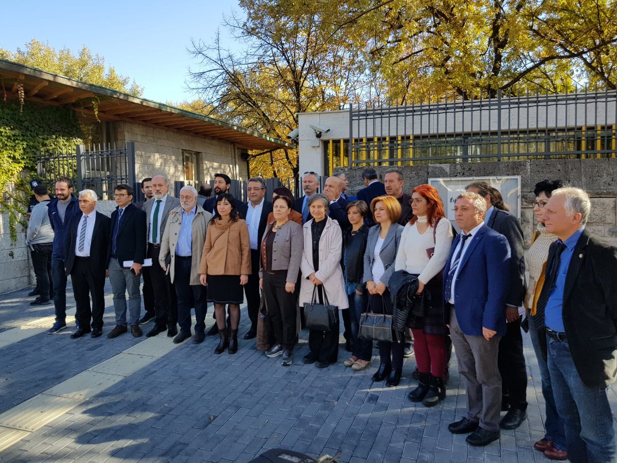 Ankara’da şube ve temsilciliklerden gelen ihraç ya da güvenlik soruşturması nedeniyle ataması yapılmayan hekim ve diş hekimlerinin yanı sıra yönetim kurullarını temsilen gelen üyeler ve MYK üyelerinin katılımıyla şiddeti değil, çalışma hakkını engelleyen yasa tasarısının tümüyle geri çekilmesi talebi ile Türk Tabipleri Birliği Merkez Konseyi önünde basın açıklaması yapıldı. Burada bir konuşma yapan SES Eş Genel Başkanı İbrahim Kara, yasa tasarısının tamamen geri çekilmesi gerektiğini belirterek, “En temel insan haklarına aykırı olan söz konusu düzenlemeyi kabul etmemiz mümkün değildir, mücadelemize devam edeceğiz” diye konuştu.