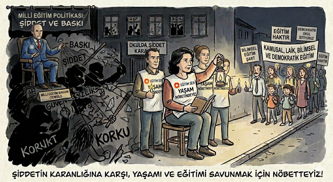 Eğitim Sen’in tarihsel deneyimi bize şunu gösteriyor: Haklar, ancak mücadeleyle kazanılır. Okullarda şiddetin sona ermesi de, eğitim emekçilerinin, öğrencilerin velilerin birlikte kuracağı dayanışma ile mümkün olacaktır. “Yaşam nöbeti” bu açıdan bir başlangıçtır; asıl mesele, bu nöbeti kalıcı bir toplumsal dönüşüme dönüştürebilmektir.